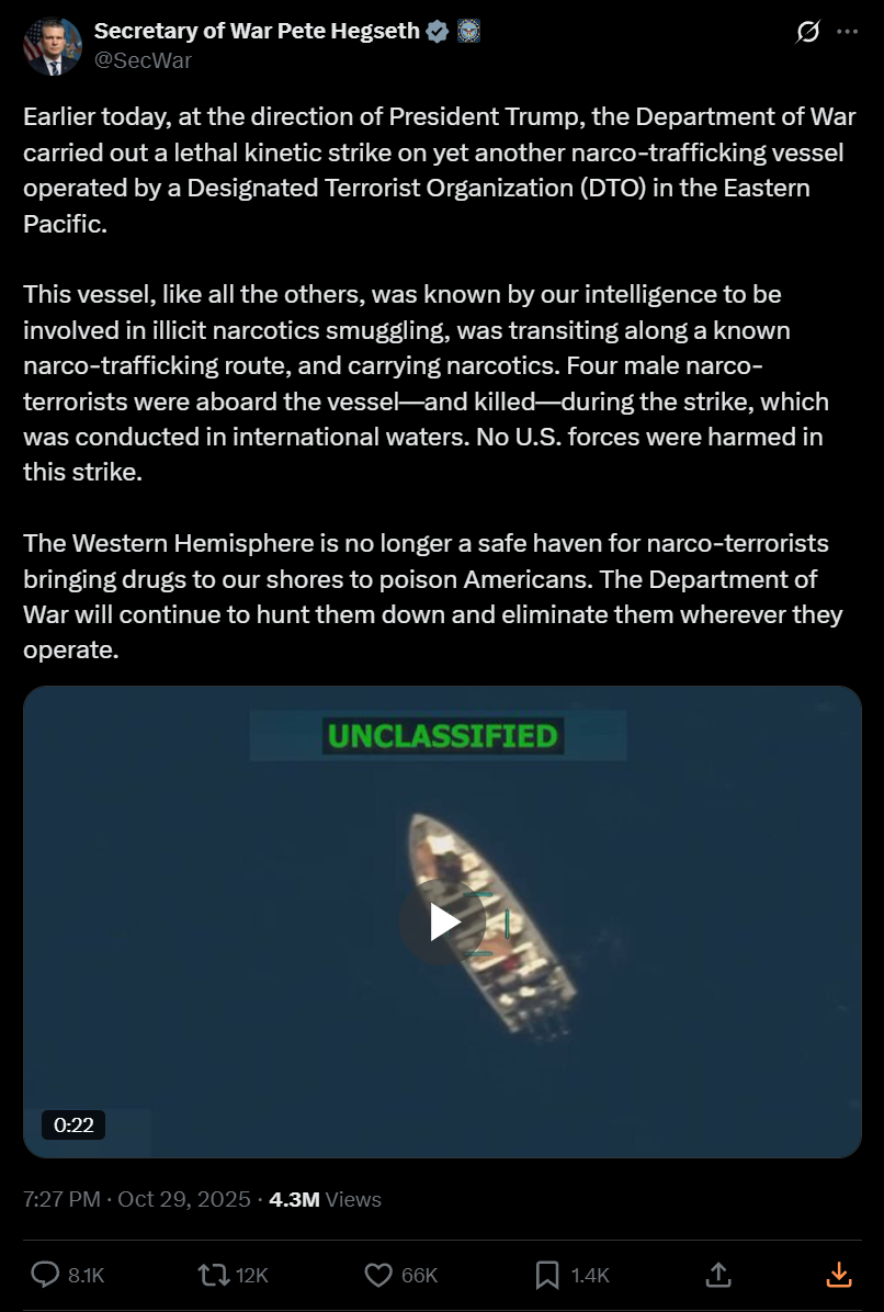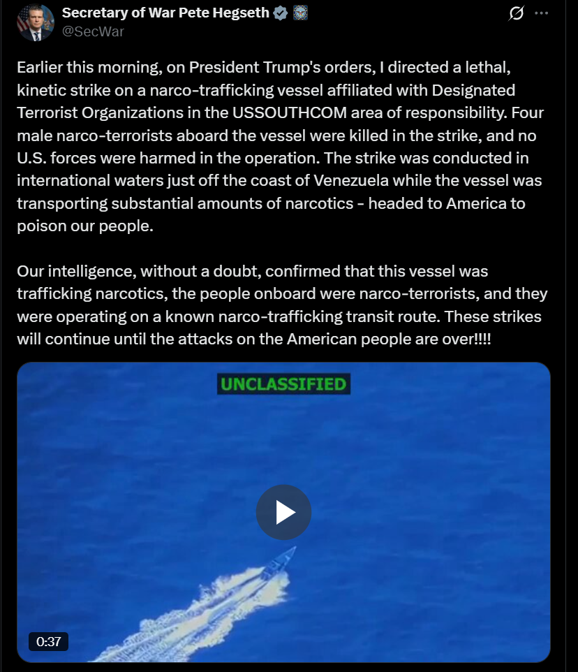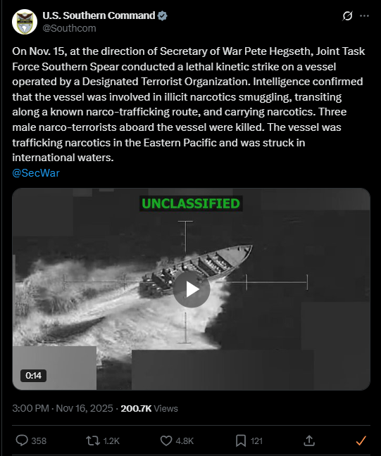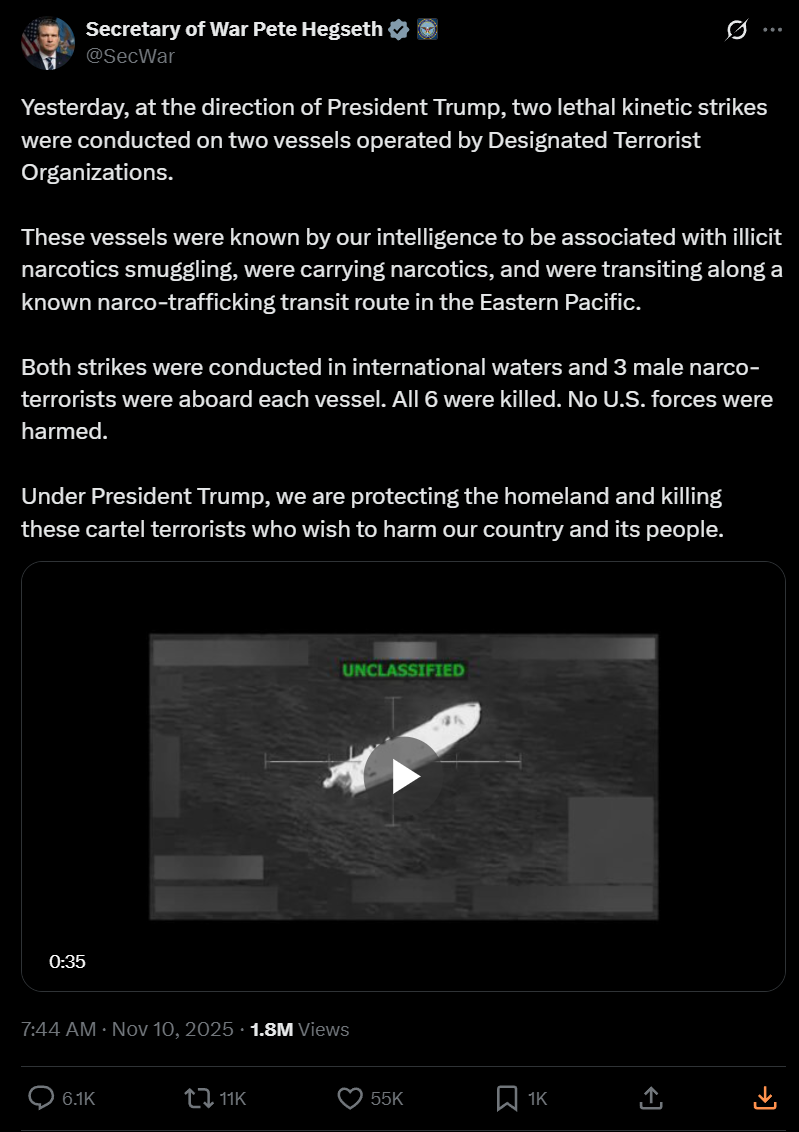 Tracking US Narcotics Strikes in the Pacific and Atlantic ocean regions under President Trump's Administration.