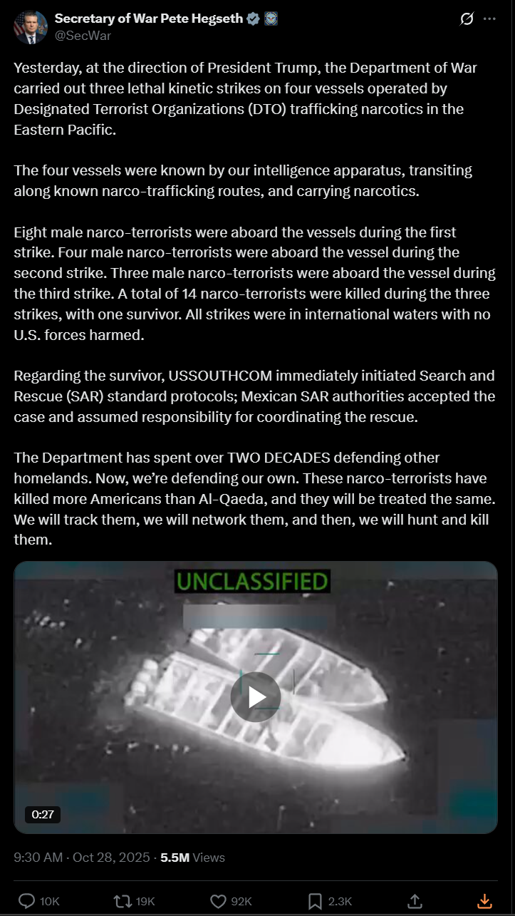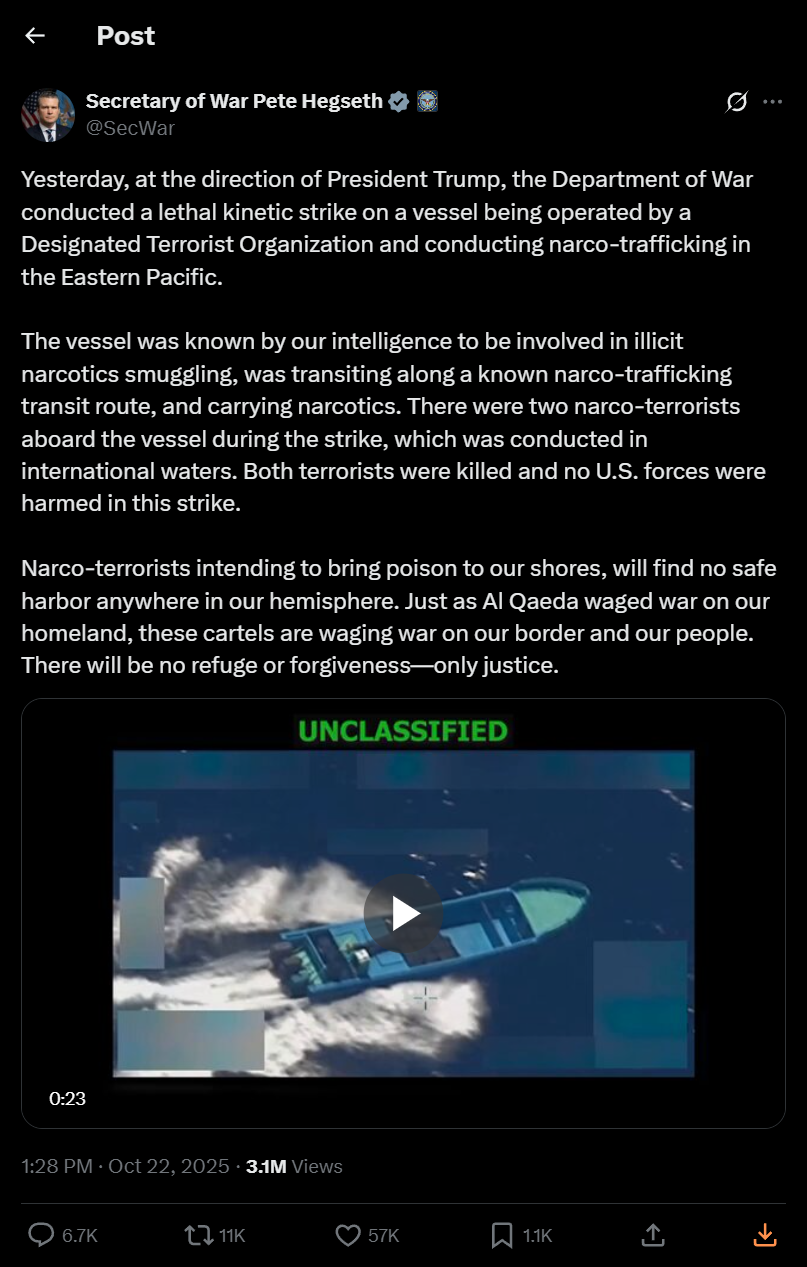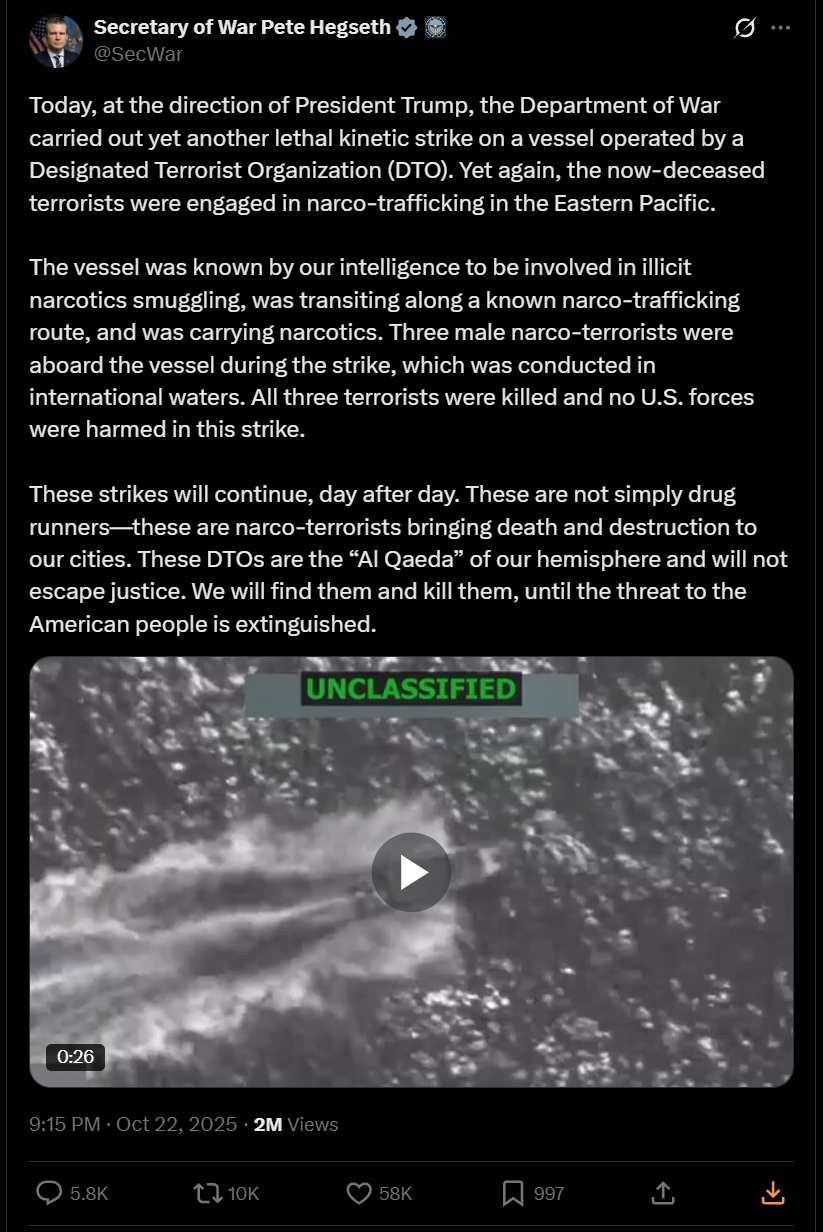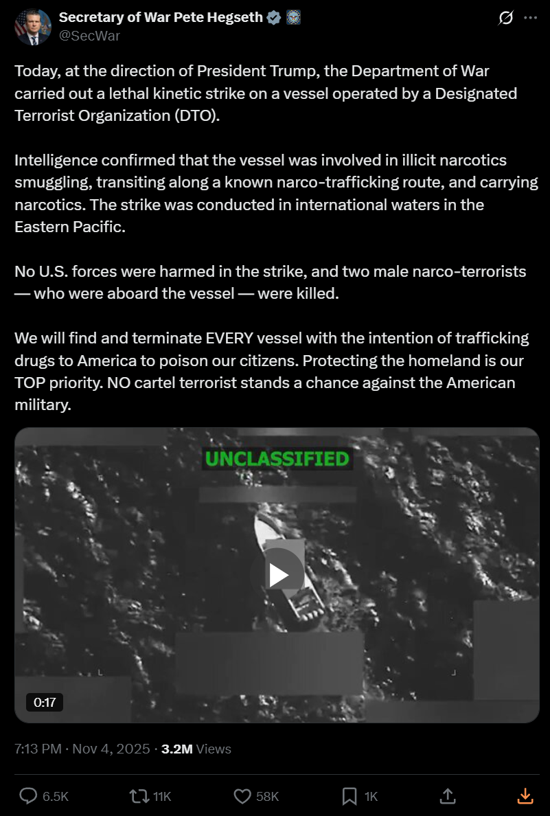 Tracking US Narcotics Strikes in the Pacific and Atlantic ocean regions under President Trump's Administration.