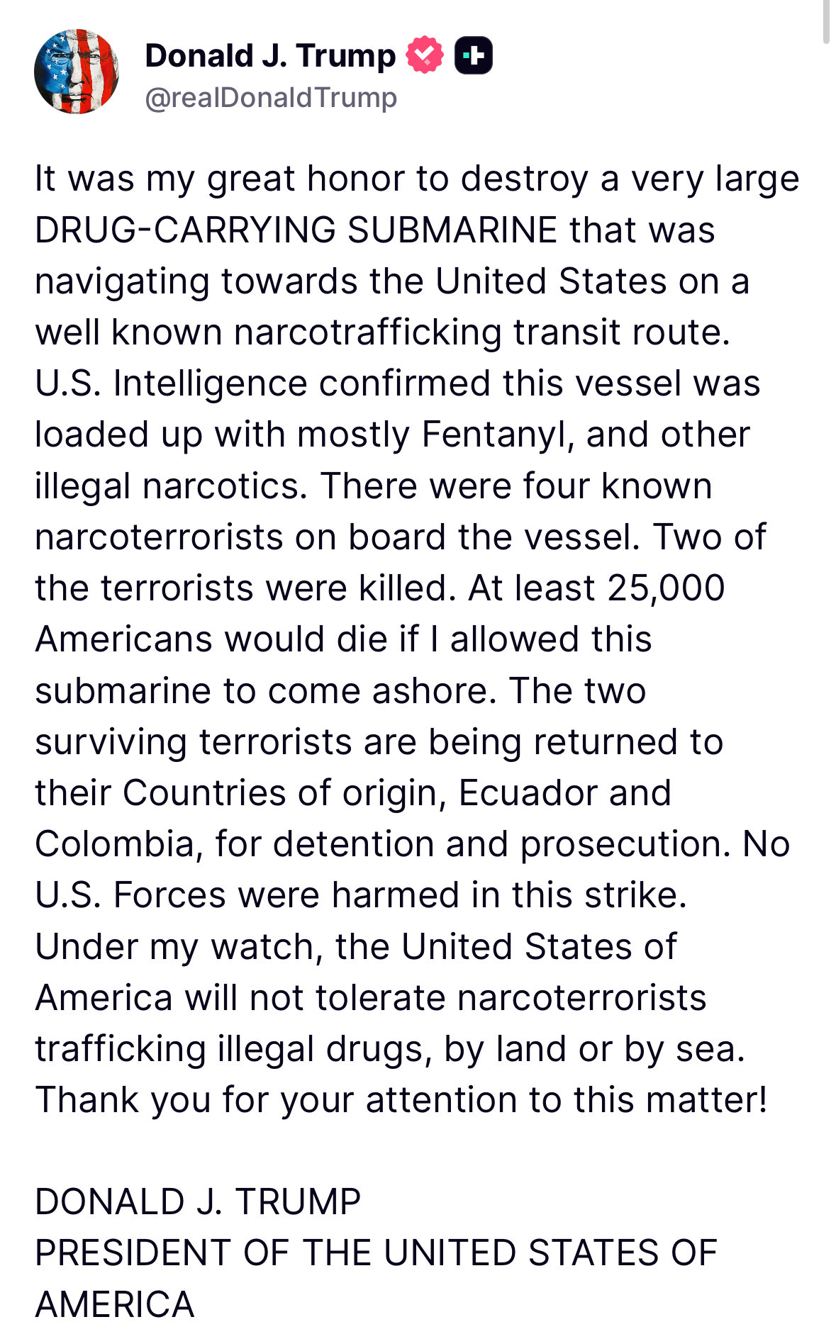US Narcotics Strike - Tracker